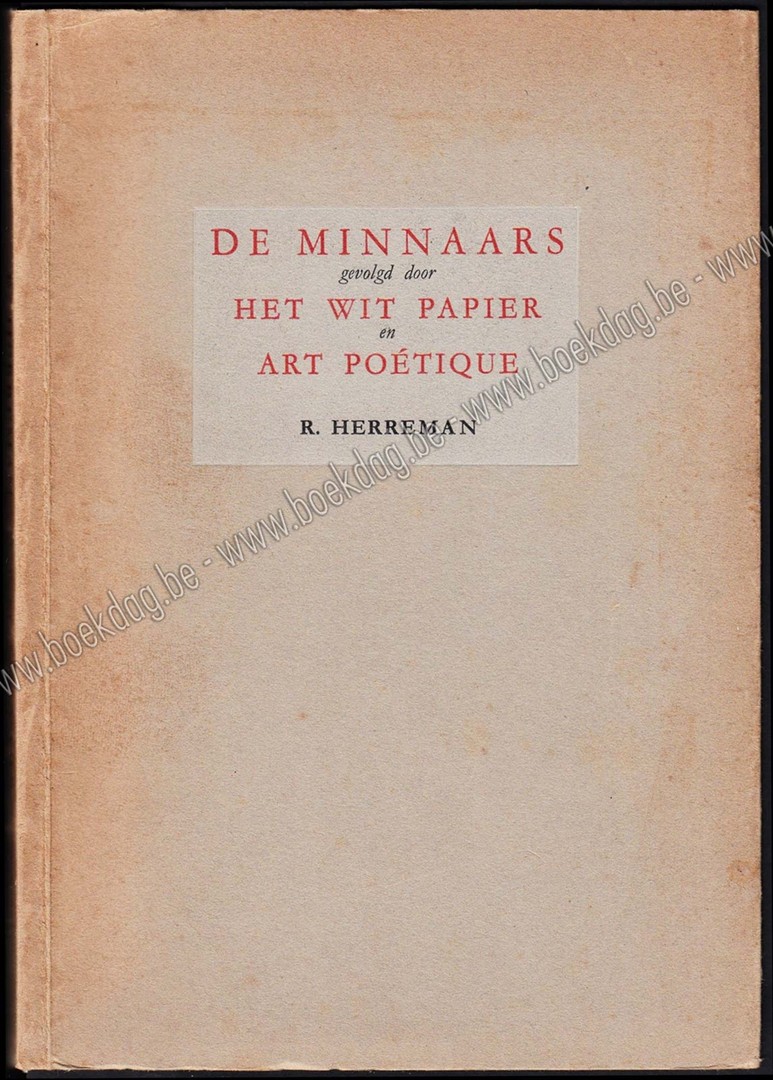 [Printer: Erasmus, Ledeberg bij Gent] [Edition: 1st] [Condition: VG] [Cover condition: G] [Auteur: Raymond HERREMAN] [Pagina's: 120] [Taal: nl] [Uitgever: A. Manteau - Nijgh & Van Ditmar] [Jaar: 1942] [Titel: De minnaars. Het wit papier. Art poetique]