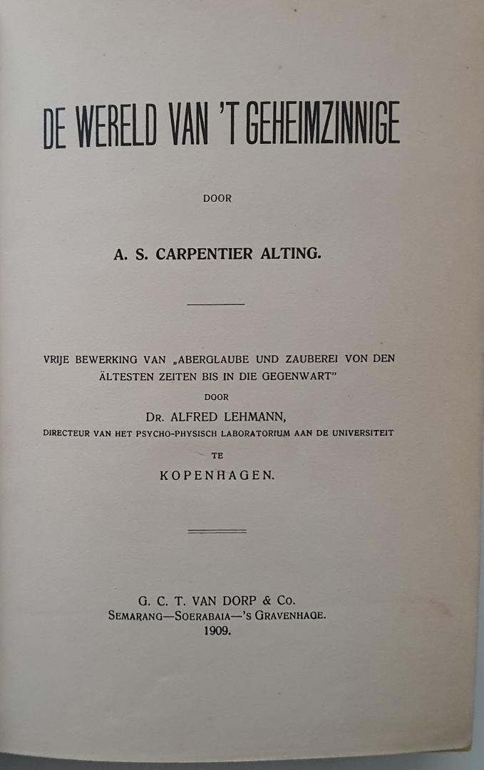 De wereld van 't geheimzinnige - CARPENTIER ALTING, A.S.