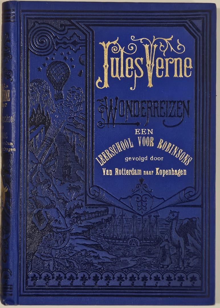 1914, blauw linnen bandje, (4), 244, (2) pp., rug iets slijtage, verder zeer goed exemplaar [Auteur: VERNE, Jules] [Taal: nl] [Uitgever: Amsterdam, Uitgevers-Maatschappij "Elsevier"] [Jaar: 1914] [Titel: Een Leerschool voor Robinsons gevolgd door Rotterdam...