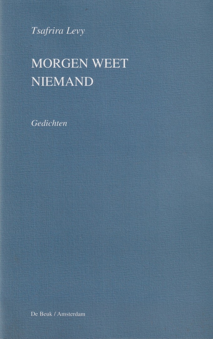 I.z.g.st., 35 pp. Wordt verzonden als brievenbuspakket [Auteur: Levy, Tsafrira] [Pagina's: 35] [Taal: nl] [Uitgever: De Beuk] [Titel: Morgen weet niemand. Gedichten]