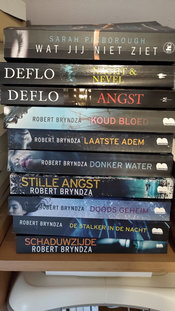 Ik hou van thrillers, bij voorkeur Scandinavische thrillers. In mijn boekenkast vind je boeken van onder meer Jorn Lier Horst, Camilla Läckberg, Samuel Björk. Robert Brynzda. Van een aantal auteurs hou ik in de gaten wanneer hun nieuw boek uitkomt en wil ik er als eerste bijzijn om hun boek aan te kopen. Daarom moet ik plaatsmaken in mijn boekenkast. Een groot aantal boeken die ik te koop aanbied, zijn nog niet zo oud, bv. de boeken van Horst en Enger. De hele reeks is een aanrader voor wie wilt weten hoe het met rechercheur Alexander Blix vergaat. Andere boeken staan al wat langer in mijn boekenkast, maar zijn daarom niet minder spannend om te lezen, bv. "De Mol" van Bart Debbaut.